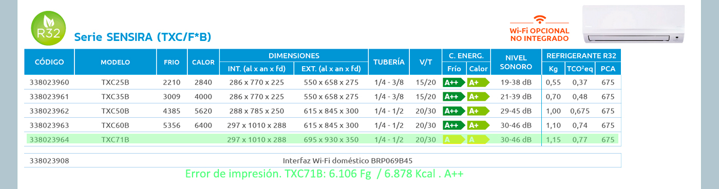 Aire Acondicionado DAIKIN SENSIRA TXC71B