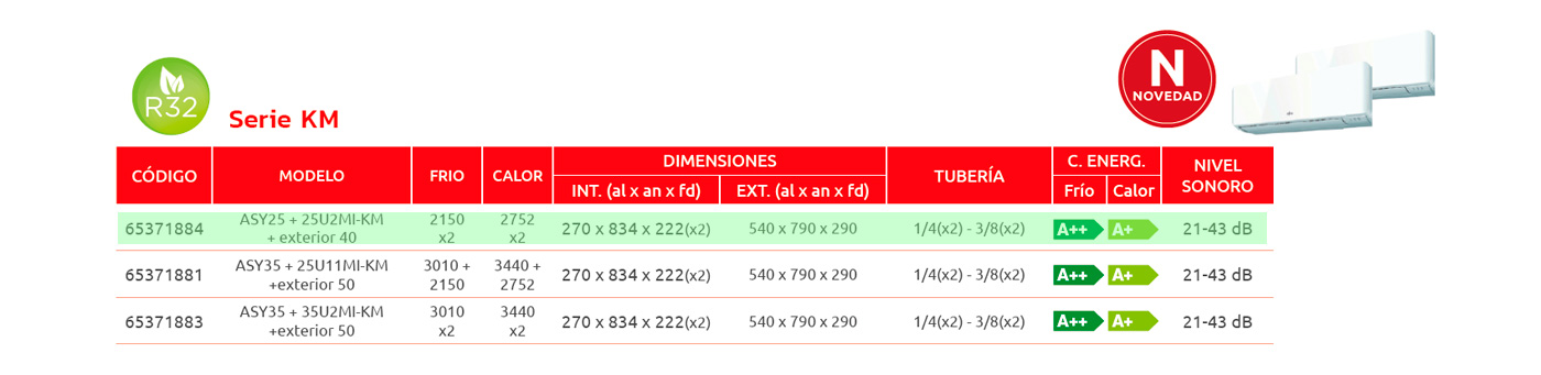 Aire Acondicionado FUJITSU ASY25 + 25U2MI-KM