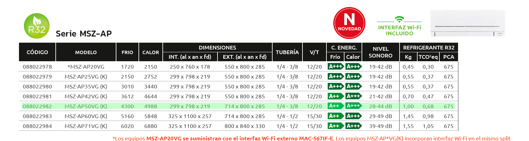 Aire Acondicionado MITSUBISHI MSZ-AP50VG(K)