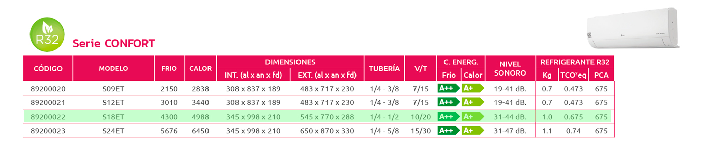 Tabla Aire Acondicionado LG Confort S18ET Enviar comentario Cancelar la respuestaLo siento, debes estar conectado para publicar un comentario.