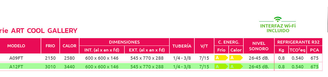 Tabla Aire Acondicionado LG Art Cool Gallery A12FT Enviar comentario Cancelar la respuestaLo siento, debes estar conectado para publicar un comentario.