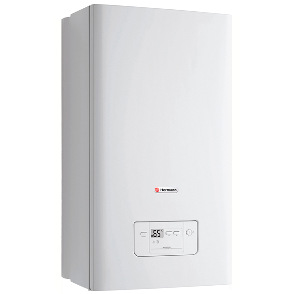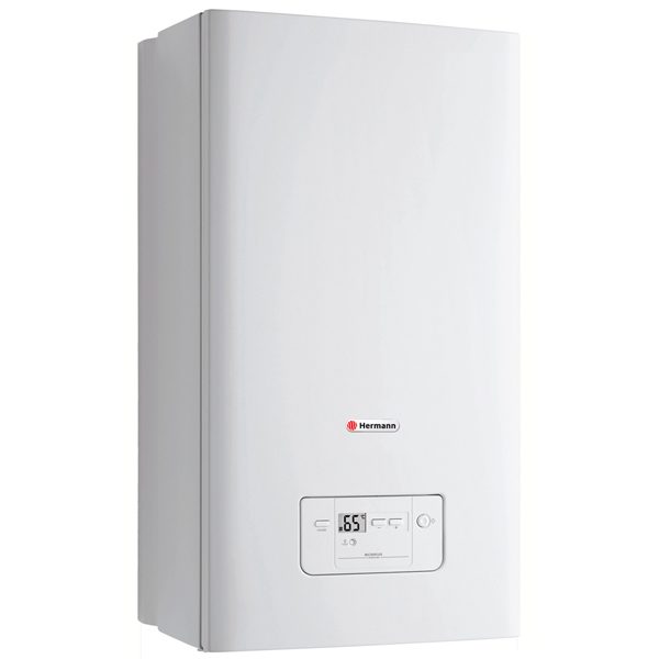 Caldera Hermann de condensación, de la gama MicraCom, con 24 Kw de potencia, sistema de modulación y ERP. Se trata de una caldera de condensación de última generación de alta eficiencia energética, con sistema de modulación, que regula el funcionamiento para obtener mejores resultados con menos consumo de gas y menor cantidad de gases contaminantes expulsados.