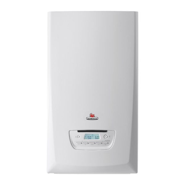 Caldera Saunier Duval de condensación, de la gama Semia, con 30 Kw de potencia, microacumulación, sistema de modulación y ERP. Es una caldera de condensación de alta eficiencia energética, con sistema de modulación, que regula el funcionamiento del equipo para obtener mejores resultados con menor consumo de gas y menos cantidad de gases contaminantes expulsados.